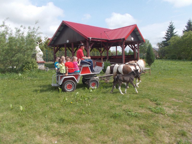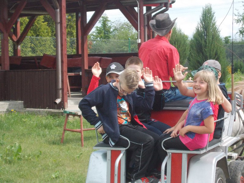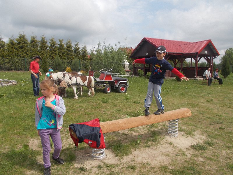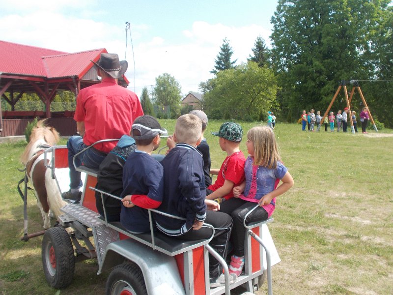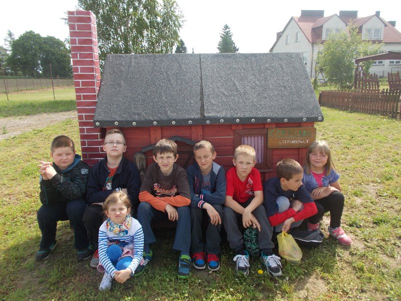 21 maja 2015r. klasy 0 - III wraz z opiekunami wybrały się na wycieczkę do wioski tematycznej "Eistein na łące" w Stefankowicach. Wycieczkę rozpoczęliśmy od zwiedzania miniskansenu. Pani przewodnik opowiedziała nam historię wsi Stefankowice. Następnie udaliśmy się do miejsca gdzie dzieci bawiły się na torze przeszkód, był zjazd linowy, przejażdżka bryczką oraz indywidualnie na kucyku. Po tych atrakcjach udaliśmy się do świetlicy wiejskiej w Stefankowicach na mały posiłek. Na koniec pobytu pani przewodnik przeprowadziła zajęcia z dziećmi- były to pokazy przyrodniczo - fizyczne, z których dzieci były bardzo zadowolone.