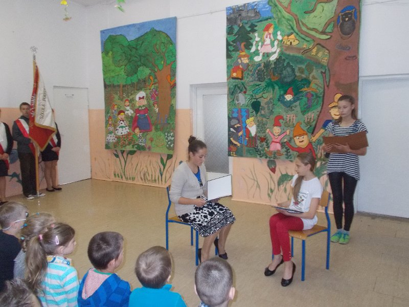 22 maja 2015r. obchodziliśmy w naszej szkole Dzień Patrona naszej szkoły - Marii Konopnickiej w 173 rocznicę jej urodzin. Świętowanie rozpoczęliśmy obejrzeniem filmu z 1960 roku pt. "Marysia i krasnoludki" na podstawie książki Marii Konopnickiej "O sierotce Marysi i siedmiu krasnoludkach." W dalszej części dnia uczniowie zostali zapoznani z życiem i twórczością Marii Konopnickiej w ciekawej formie wywiadu. Rola słynnej pisarki przypadła Karolinie Osika a dziennikarką prowadzącą rozmowę była Anna Rędzia.
